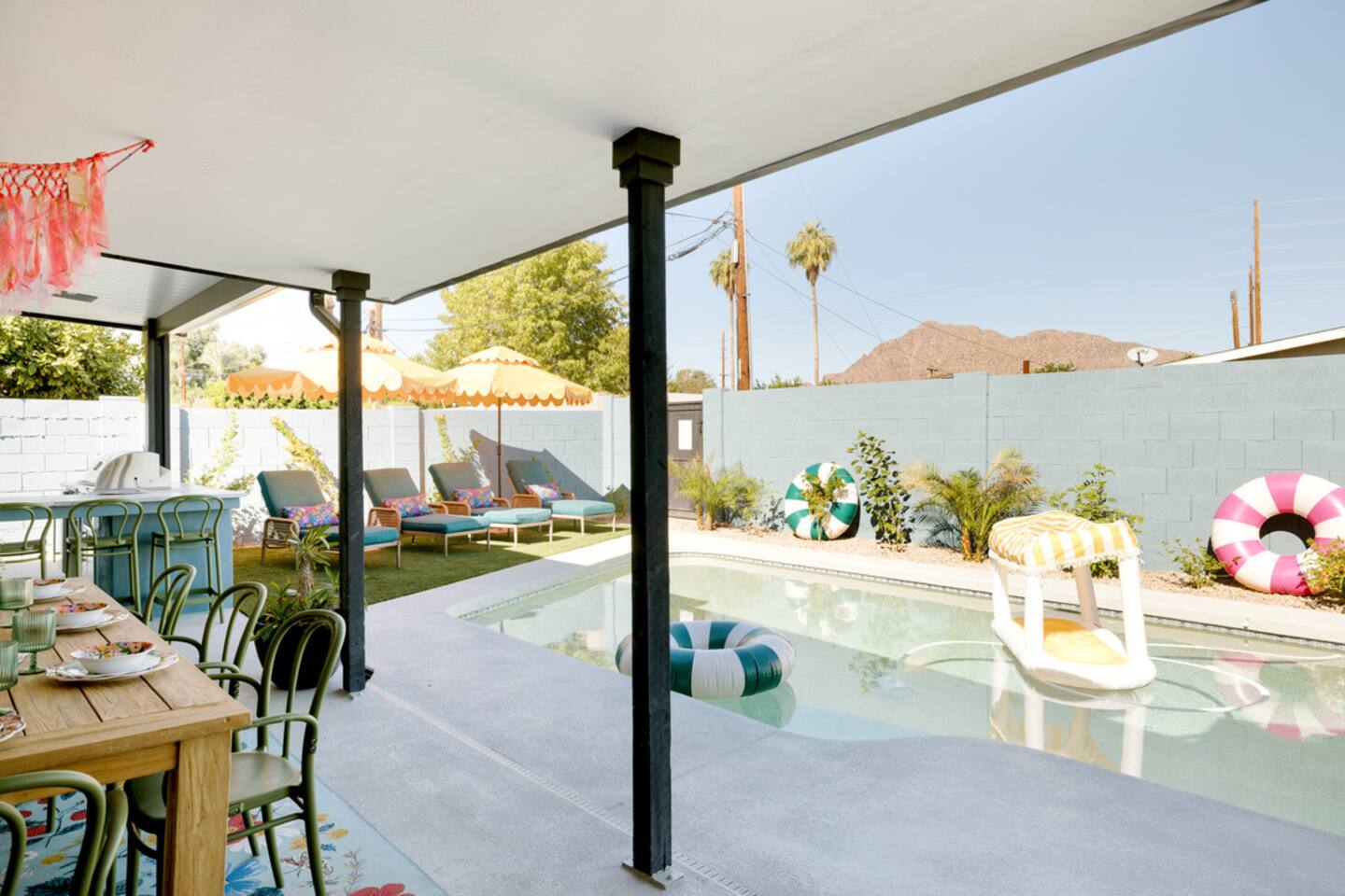 Camelback Views, 1 mile to Old Town! - Outdoor Kitchen w/grill, fridge - Heated Pool*, Fire pit, Cornhole - King Bedroom + Ensuite Baths, 65" TV - Yard area great for Yoga + Games - Concierge Service! Cheese board, marg bar, decor to your stay! Arriving early in the day or leaving late? Ask us about our half day add-on, if our calendar allows it.
