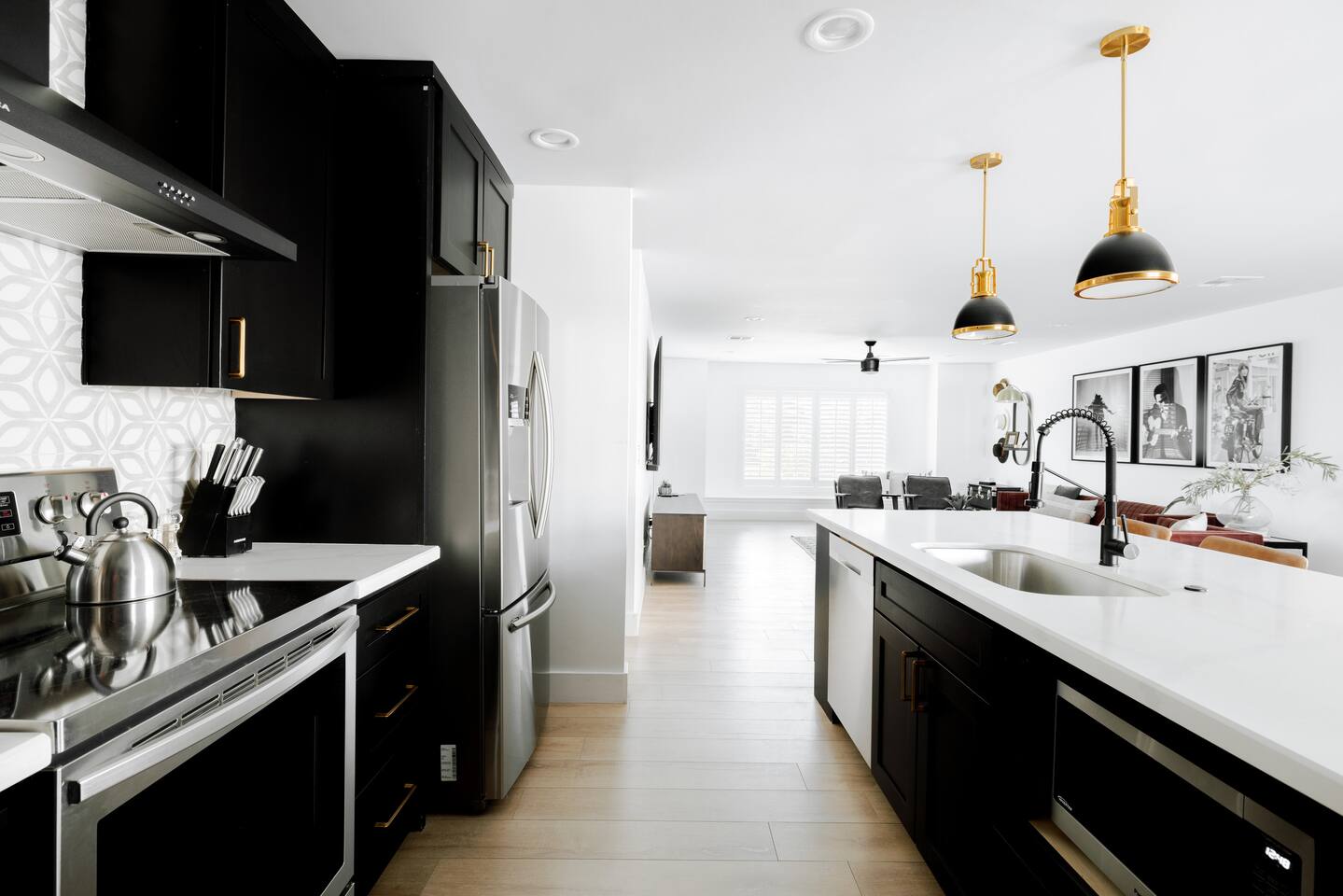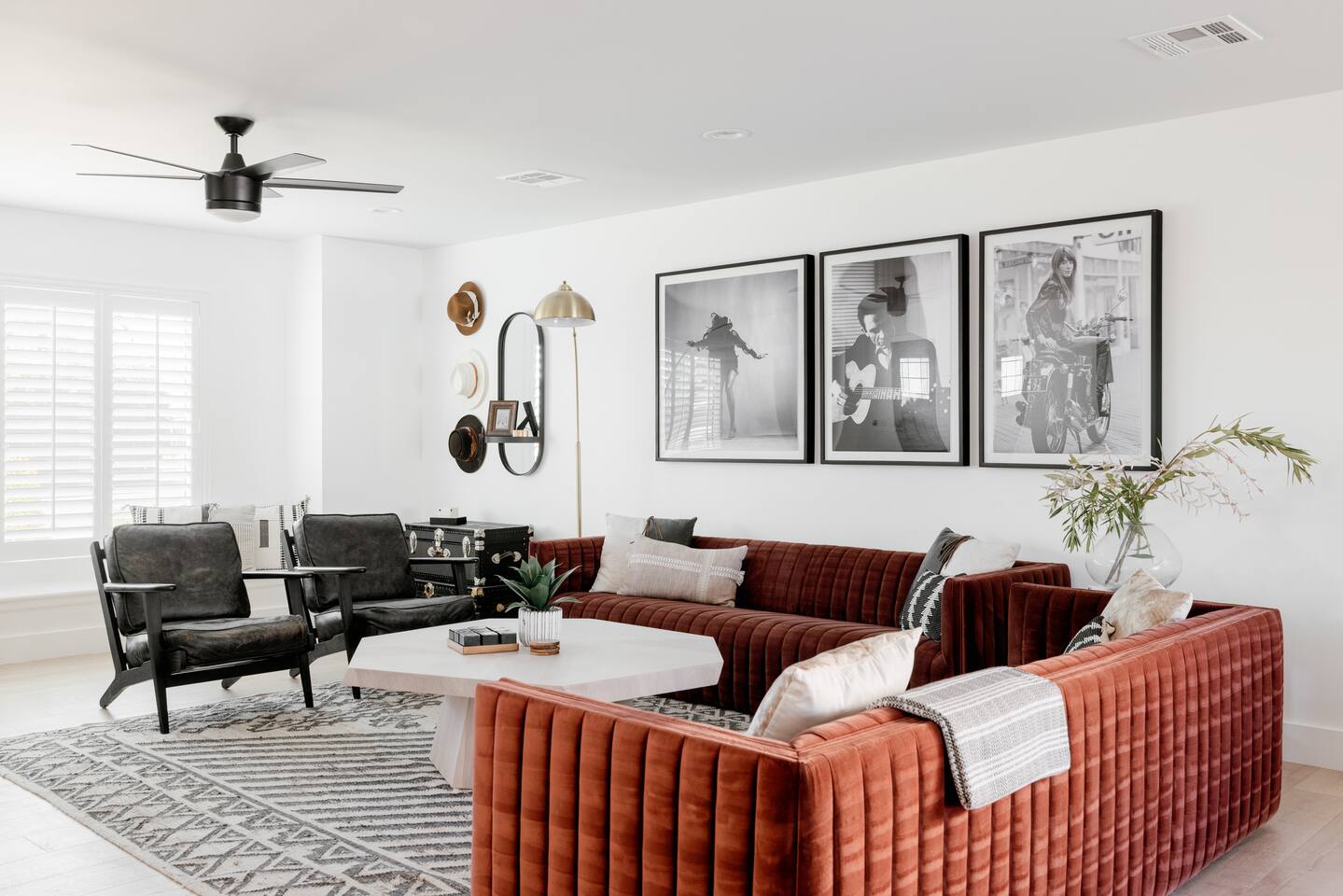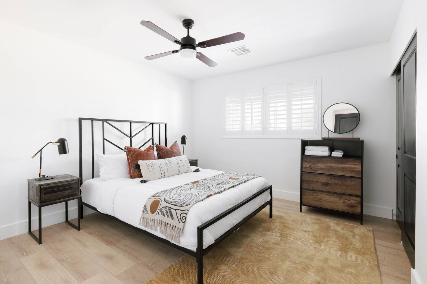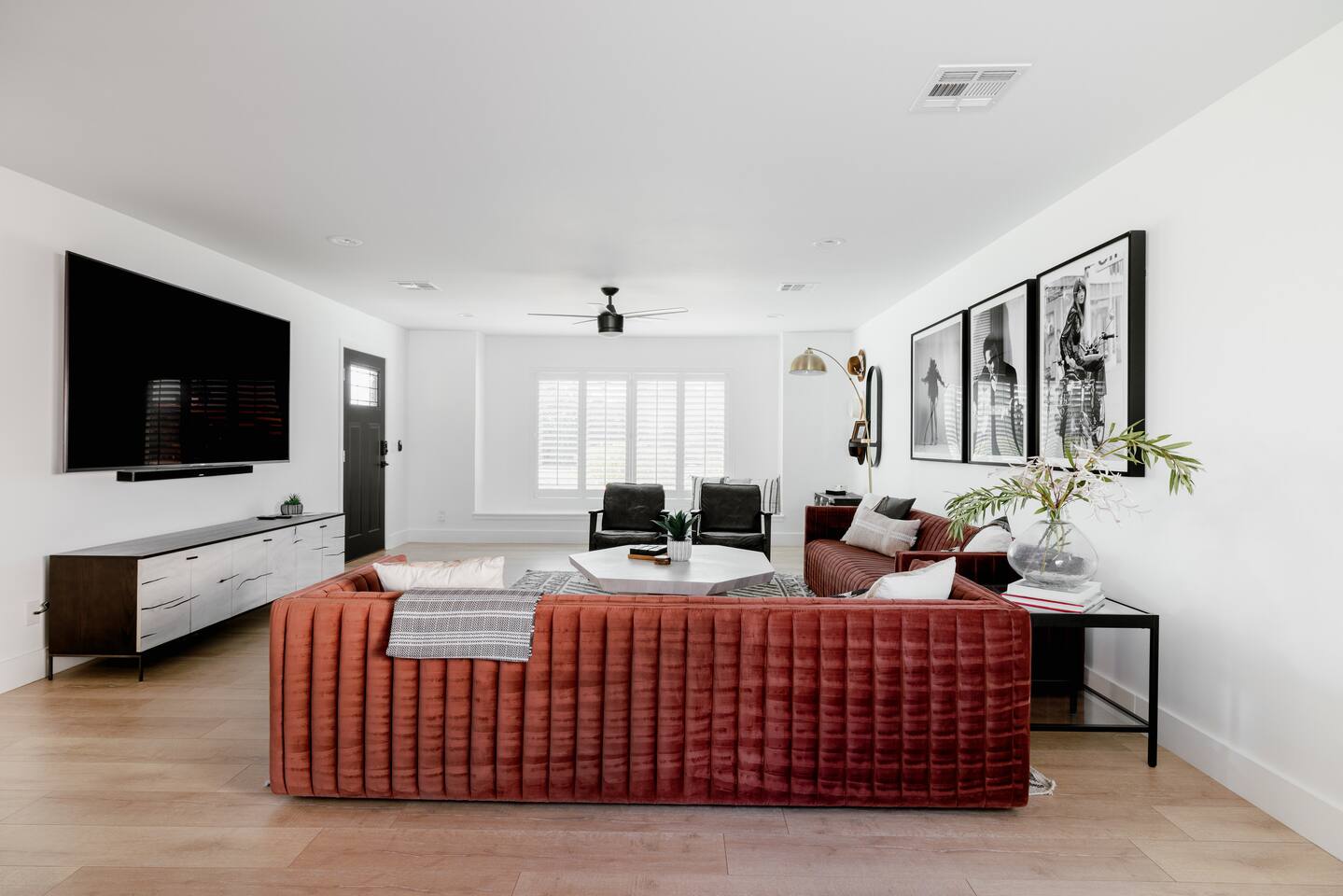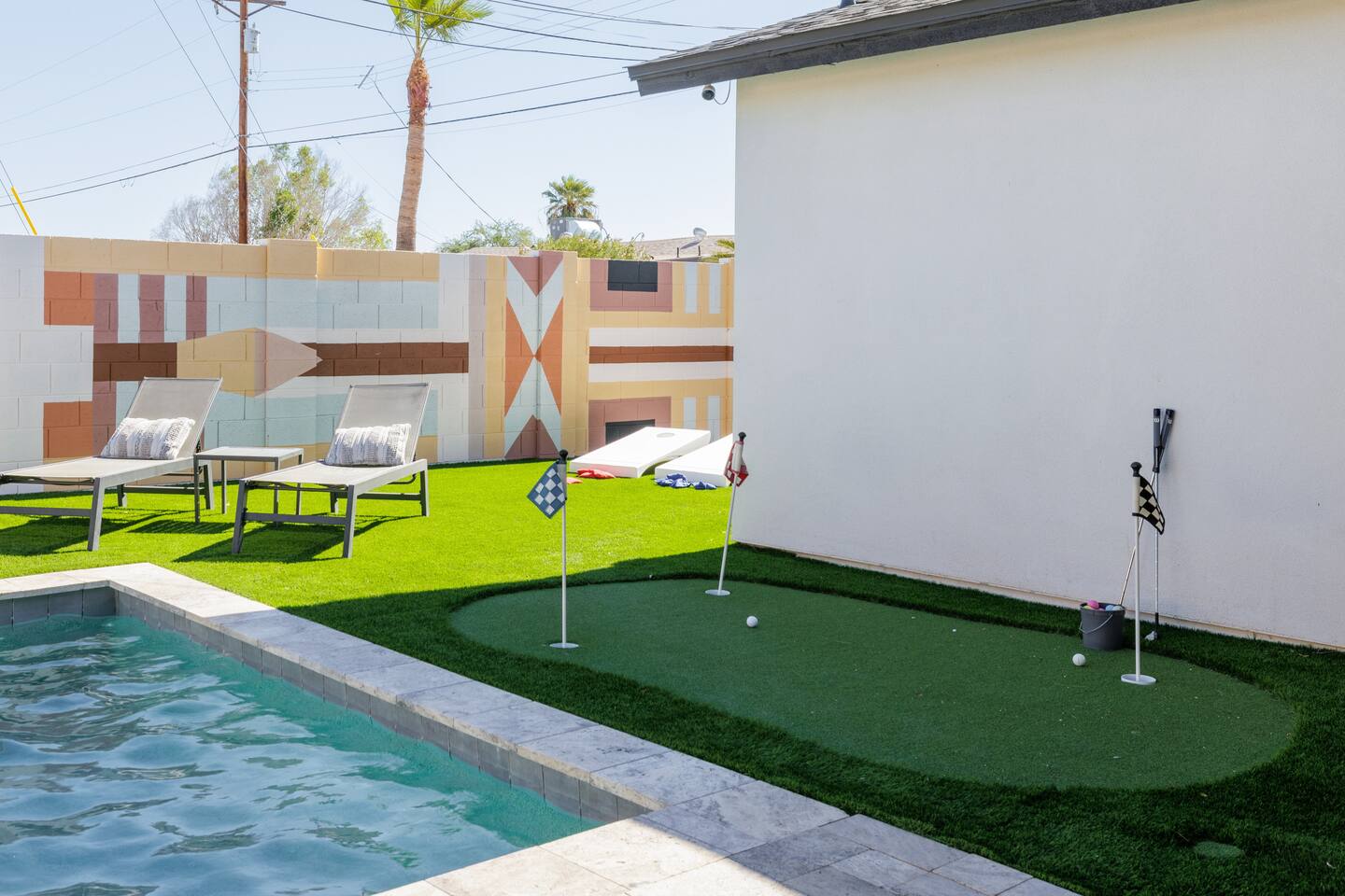 Welcome to your stylish Scottsdale retreat, perfectly designed for relaxation and fun! Just a 4-minute drive from Old Town, this modern home is your private oasis. The backyard is a true highlight, featuring a sparkling cocktail pool, a putting green for some friendly competition, and a cozy gas fire pit for evening conversations under the stars. Inside, the bright and airy living room invites you to unwind with an 85" Smart TV, perfect for movie nights. The high-speed WiFi (up to 500Mbps) keeps you connected throughout your stay. The large, fully stocked Chef's Kitchen is ready for your culinary adventures, complete with an island that seats four. BEDROOMS Each bedroom comes with room-darkening shutters, ceiling fan and full length-mirror - Bedroom 1: King bed, closet, Ensuite bath - Bedroom 2: Queen bed, dresser BATHROOMS Each bathroom comes with towels, washcloths, hand towel, hair dryer, shampoo, conditioner, body wash, hand soap, TP, toilet spray - Primary Bath: walk-in shower - Second Bath: shower + tub combo KITCHEN - Large and fully stocked Chef's Kitchen! - Locally roasted coffee + tea bar, creamer, sweetener - Cuisinart drip coffee pot, teapot, blender, toaster - Pots, pans, baking dishes and sheets - Storage containers for leftovers - Drinking + wine glasses - Microwave - Electric range - Dishwasher with detergent to start - New fridge with ice maker and filtered water - Island seats 4 - Hand soap and dish soap provided - Spices and olive oil to start DINING - Dining table seats 10 - Outdoor table under the covered patio seats 8 ENTERTAINMENT - WIFI speeds up to 500 Mbps - SmartTV: Living room - Use your own login to access a variety of streaming apps - Not live TV at this time, unless you have your own login POOL - Private cocktail pool: pool depth 1.5' to 3.5' deep - Pool Heat: $65/night USD or $400/week USD, Oct–Apr - Baja shelf (1.5' deep) - Bubblers & waterfall feature - 2 pool side loungers - Electric air pump for your pool floats! - Pool towels provided *please note: while the property is fenced in, the pool does not have a dedicated fence OUTDOORS - Gas fire pit - Propane grill, propane provided - Outdoor dining table seats 8 - Outdoor sofa seats 3, plus 2 additional chairs - Cornhole + Foosball LAUNDRY - Top load washer + dryer - Laundry detergent, stain remover and dryer sheets provided - Iron, ironing board and steamer PARKING - 2 parking spaces in the driveway - Street parking available first come first serve