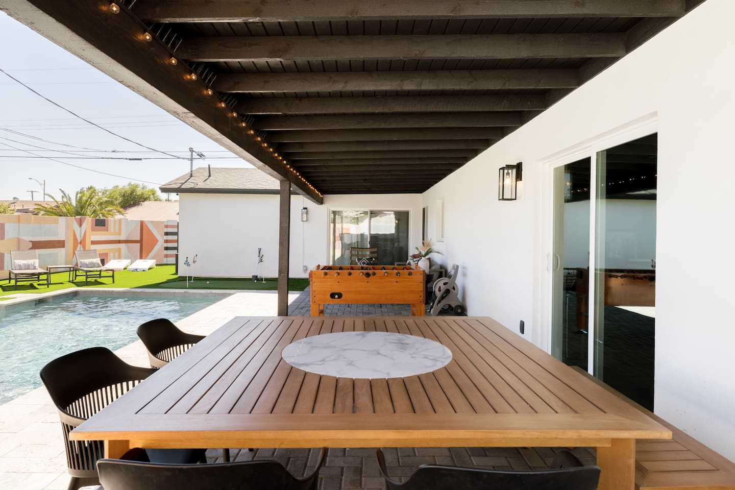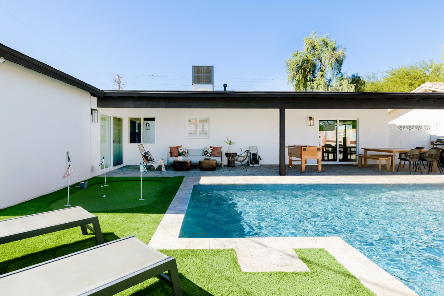 4 min drive to Old Town Scottsdale! -Putting Green, Foosball Table, Cornhole -85" Smart TV -Wifi up to 500Mbps -Weber Grill, Stocked Kitchen -Concierge Service Available! We'll stock the fridge, prepare a cheese board, set up a margarita bar or put up some light decorations! -Arriving pretty early or leaving kinda late? Ask us about our half day add-on!