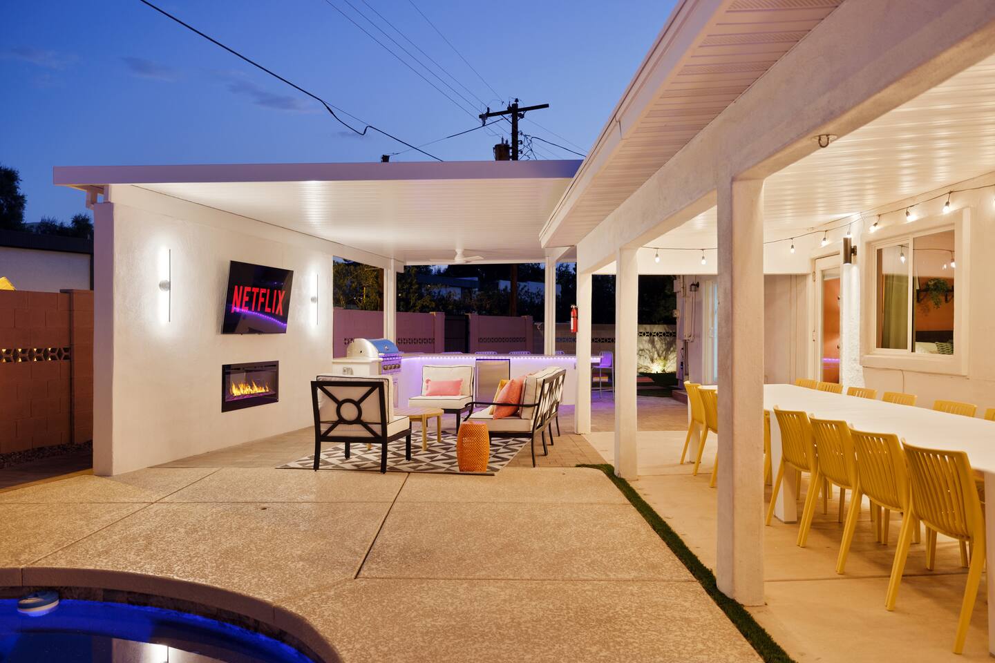 - 2 Miles from Old Town Scottsdale! - Heated pool*, pool loungers, pool towels - Hot Tub, yard for games or yoga - Covered outdoor lounge, Smart TV, fireplace - Outdoor Kitchen, grill, fireplace, fridge, bar seating - Glam bar, Games, Smart TVs - Concierge Service: Stock the fridge, snack board, marg bar, decor **Arriving early or leaving late? Ask us about our half day add-on, if our calendar allows