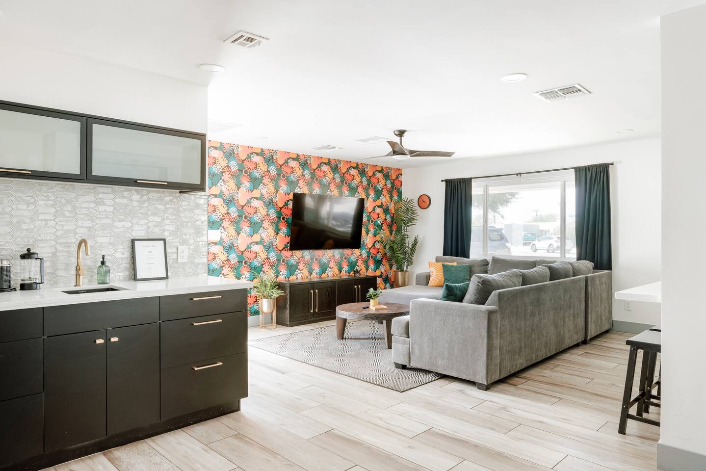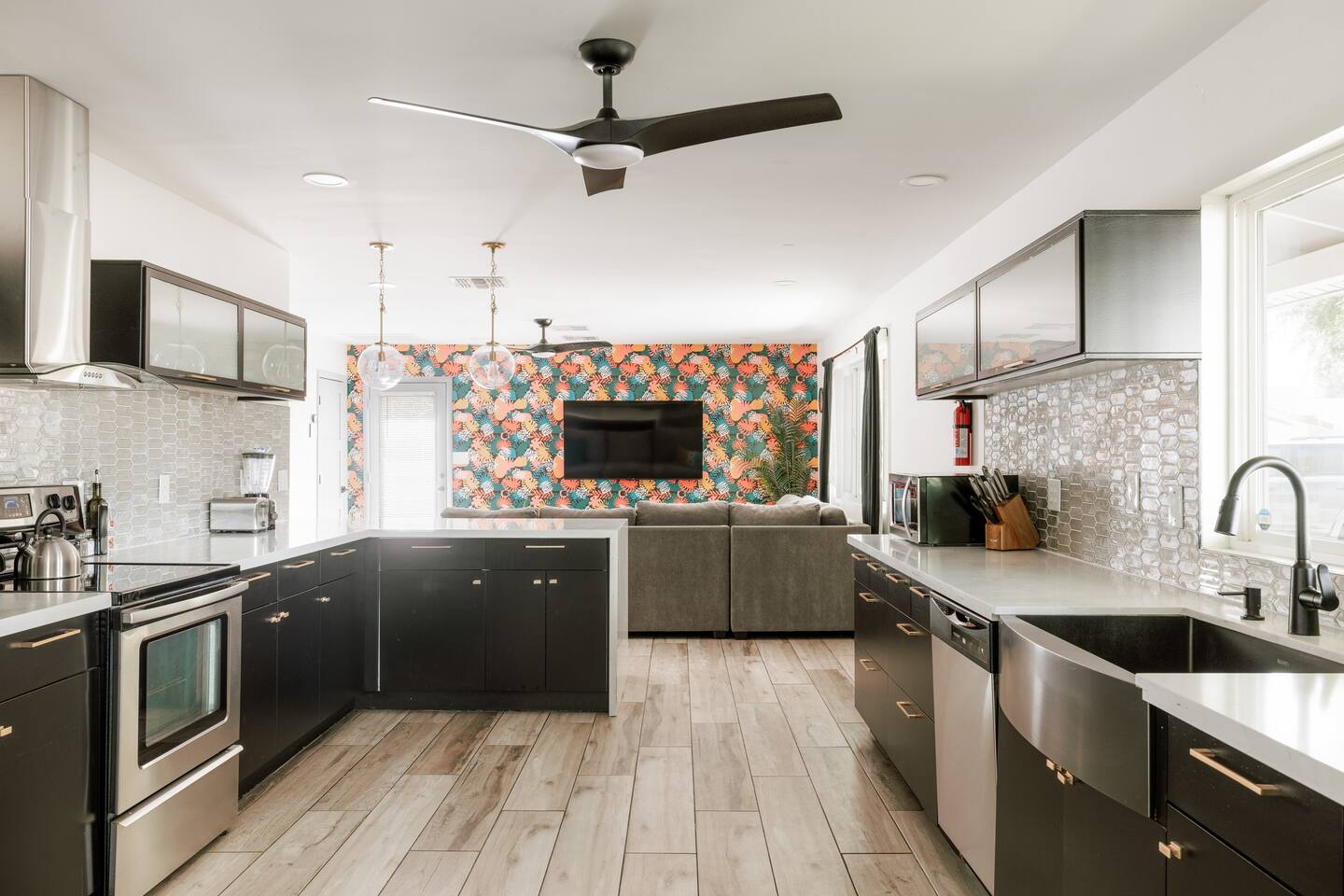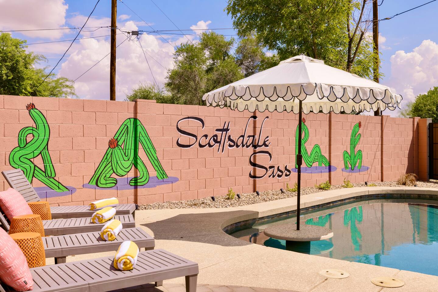 Escape to your own private Scottsdale retreat just 2 miles from Old Town—a polished, two-bedroom hideaway designed for couples, business travelers, and small groups of up to 4. Enjoy a heated pool, hot tub, covered outdoor lounge with Smart TV + fireplace, and a full outdoor kitchen made for effortless evenings in. Inside, a chef’s kitchen, glam bar, and thoughtful touches create a calm, modern base for work trips, weekday getaways, or last-minute escapes. Quiet, stylish, and easy—this is Scottsdale done right. BACKYARD OASIS - Covered Outdoor Kitchen: grill, beverage fridge, bar seating - Heated pool, heating optional Oct-April - Hot tub - Covered Outdoor dining for 16 - Fireplace and Smart TV - Yard for Yoga and games - Yoga mats provided! BEDROOMS Bedroom 1: King bed Bedroom 2: Queen BATHROOMS - Primary Bath Ensuite: double vanity, walk-in shower - Third Bath: double vanity, walk-in shower -> Each bathroom comes with towels, washcloths, hand towel, hair dryer, shampoo, conditioner, body wash, hand soap, TP, toilet spray KITCHEN - Large and fully stocked Chef's Kitchen! - Locally roasted coffee + tea bar, creamer, sweetener - Coffee pot, teapot, toaster, blender - Pots, pans, baking dishes and sheets - Storage containers for leftovers - Drinking + wine glasses - Microwave - Electric range - Dishwasher with detergent - Fridge with ice maker and filtered water - Peninsula seating - Hand soap and dish soap provided - Salt, pepper, olive oil to start DINING - Dining table seats 6 - Doubles as a great workspace for work travelers ENTERTAINMENT - High Speed WIFI - SmartTV: Living room + Primary Bedroom - Use your own login to access a variety of streaming apps - No live TV at this time, unless you have your own login POOL + HOT TUB - Private heated pool - Pool Heat: $65/night USD or $400/week USD, Oct–Apr - Hot tub included - Pool side loungers - Electric air pump for your pool floats - Pool towels provided *please note: while the property is fenced in, the pool does not have a dedicated fence LAUNDRY - Laundry detergent, stain remover and dryer sheets provided - Iron, ironing board and steamer PARKING Located in a quiet cul-de-sac, we only have parking available for 3 average sized cars as there is no street parking permitted. Uber or Waymo (self driving taxis!) are a great option!